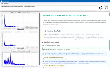 Experience the next generation of data auditing with the AI Analyst, a sophisticated multi-agent system integrated directly into the software. Far more than a simple chatbot, the AI Analyst autonomously audits your datasets, selects relevant sensors, applies advanced mathematics (filters, integrals, FFT), and visualizes the results. By supporting leading models like Google Gemini and OpenAI, it transforms complex telemetry into professional, ready-to-share PDF reports based on your plain-language technical questions.
